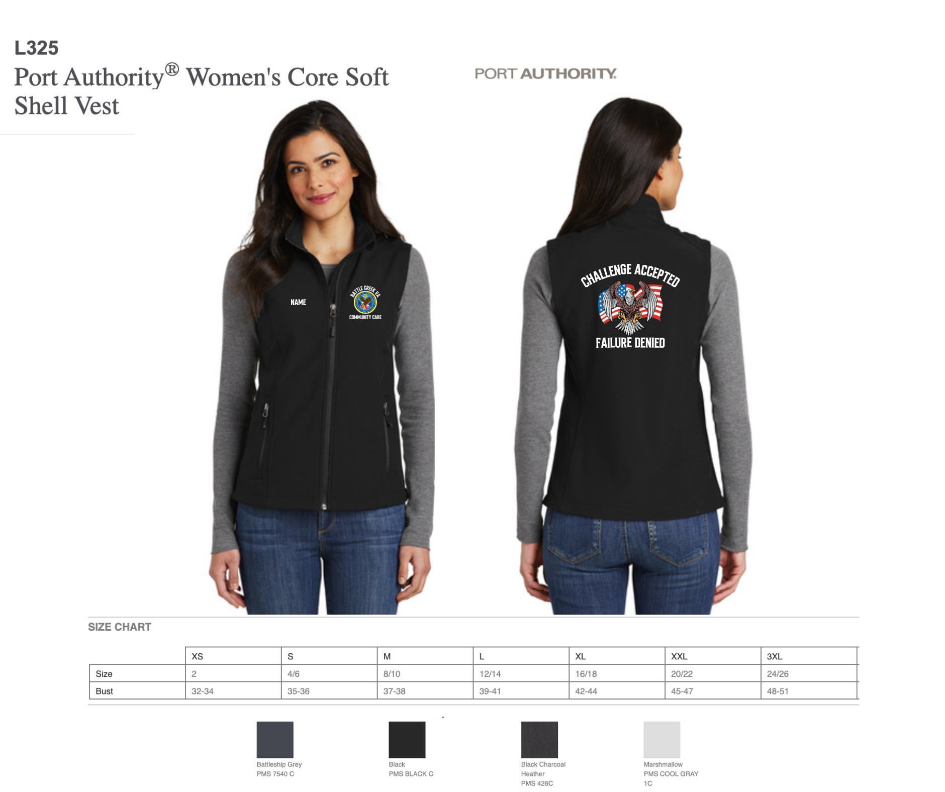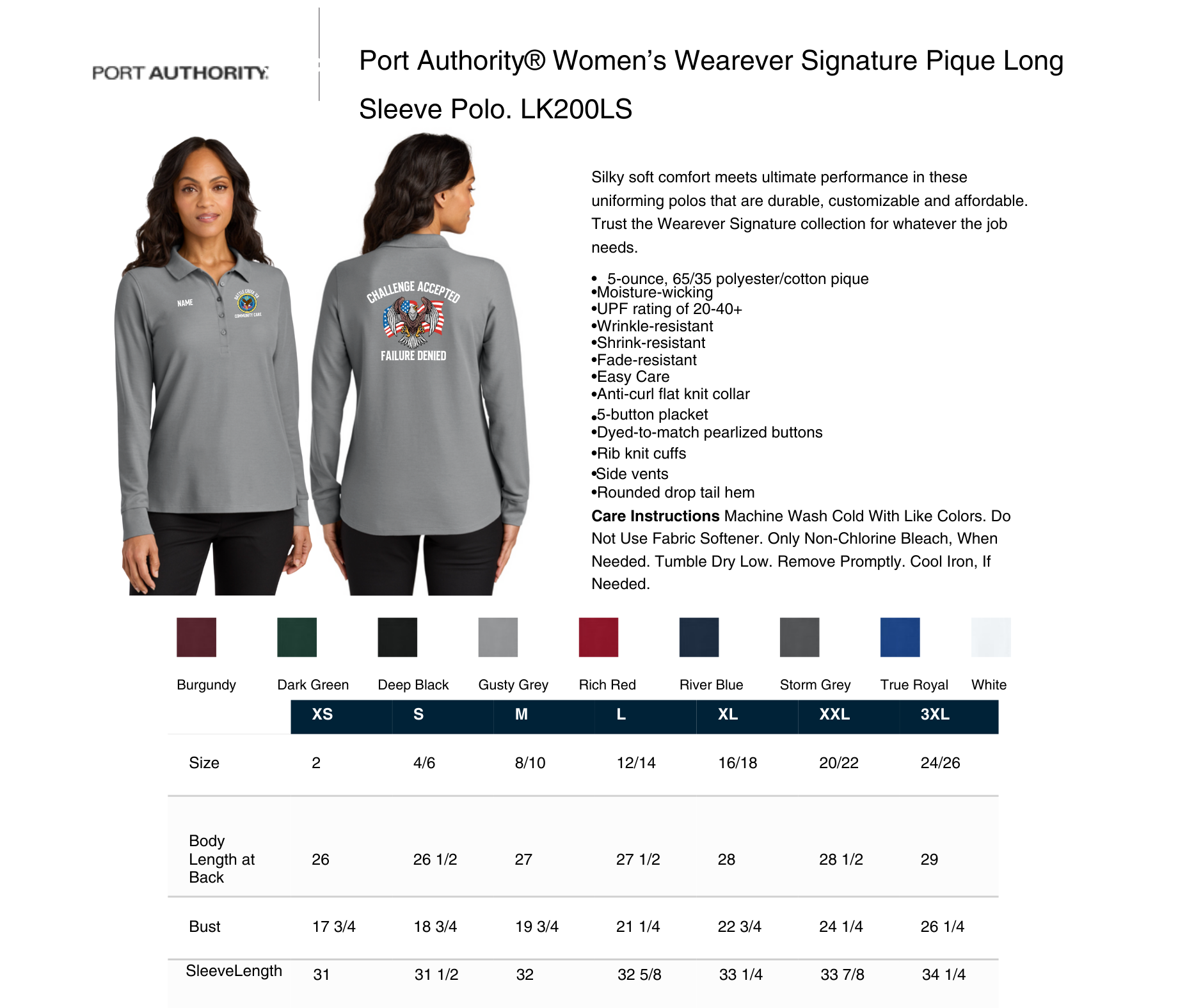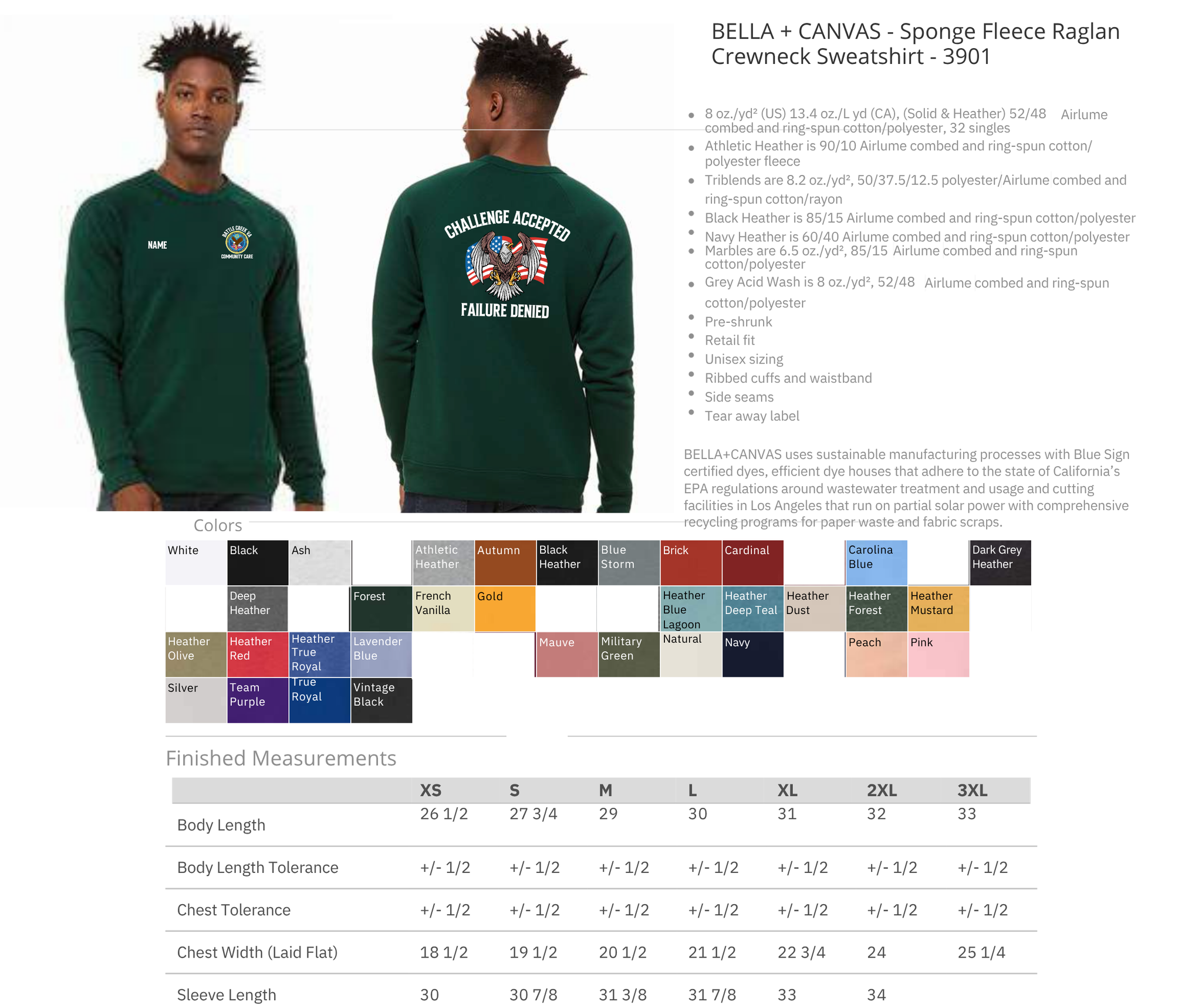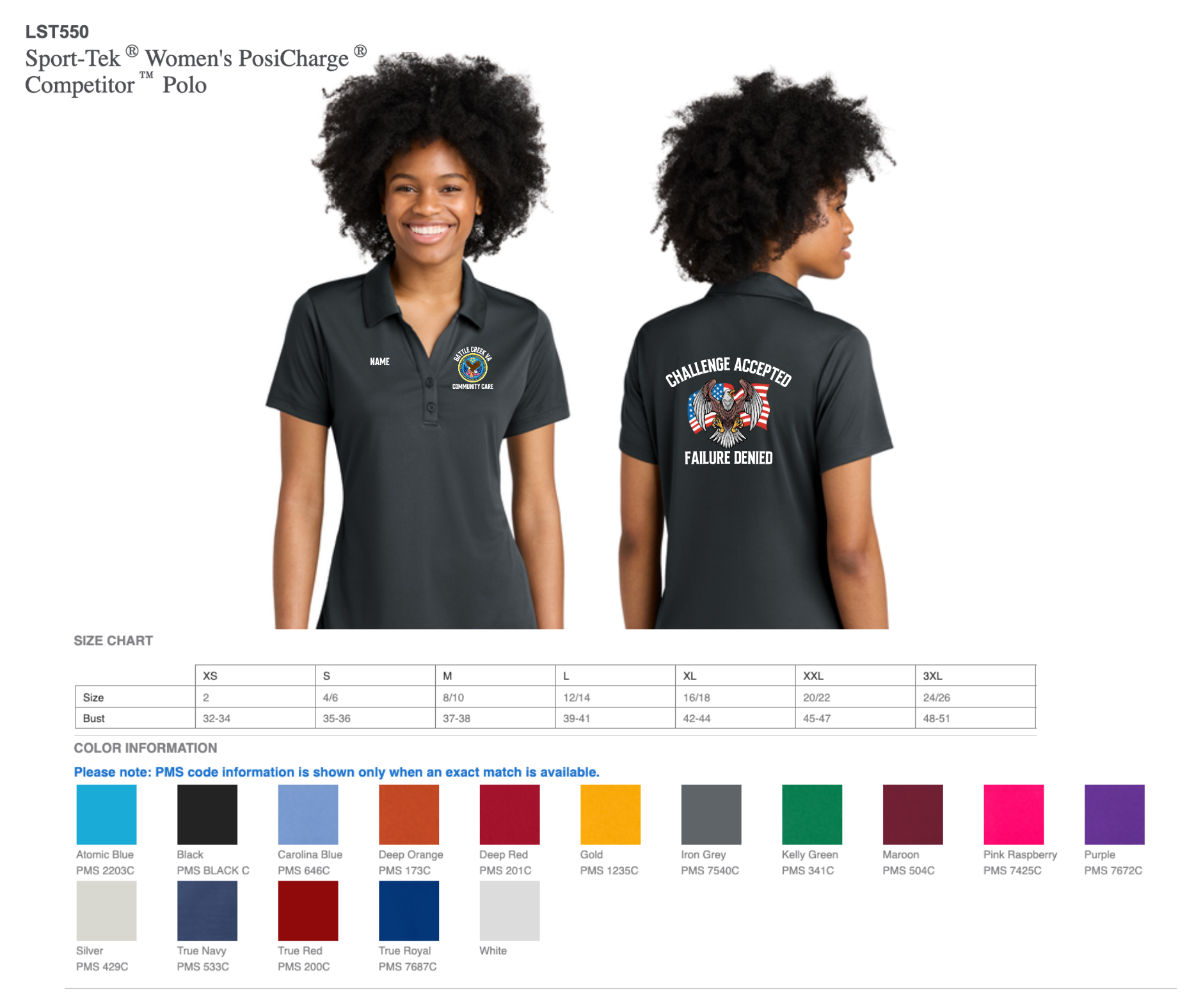 sizing specs and color options in pictures