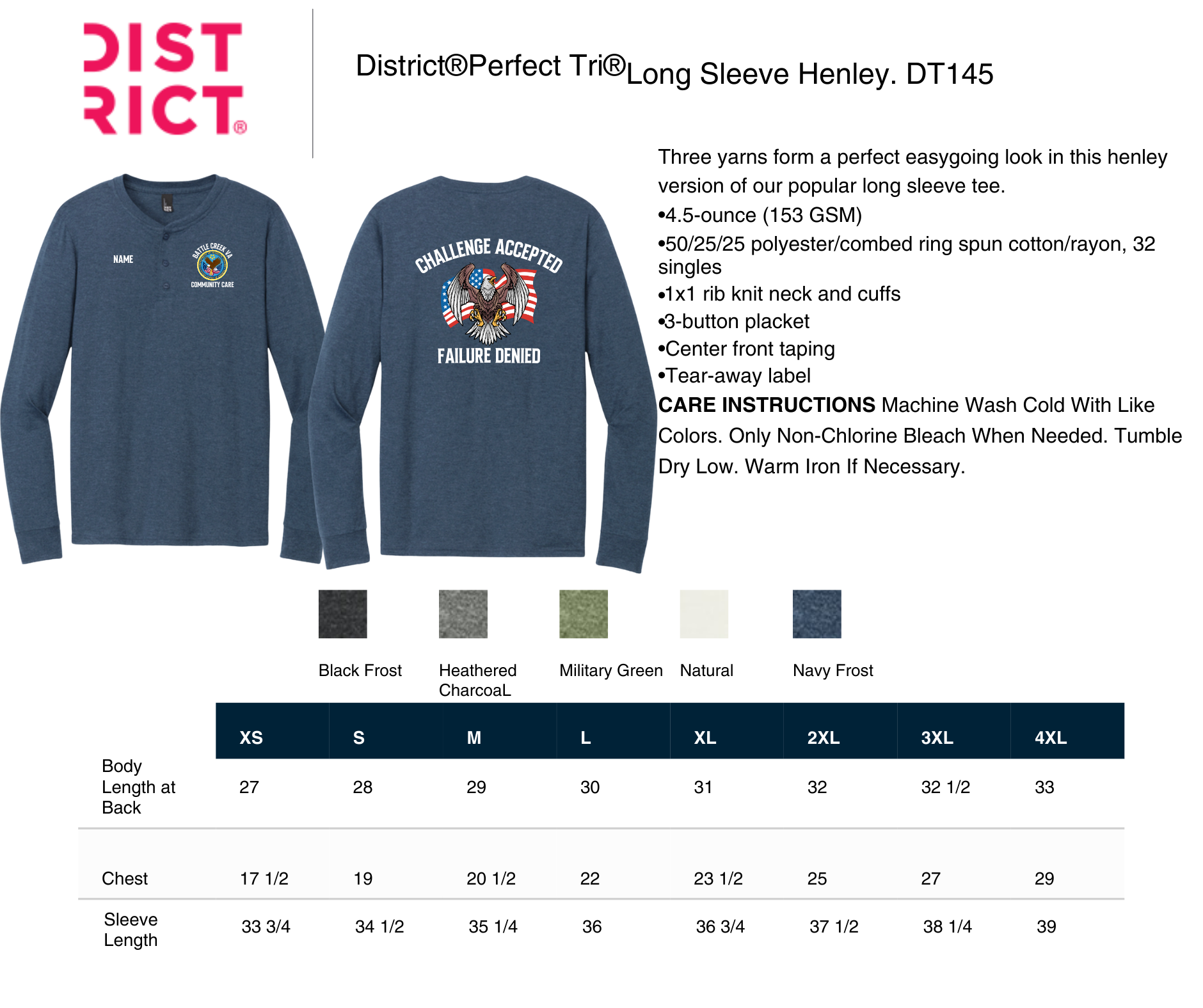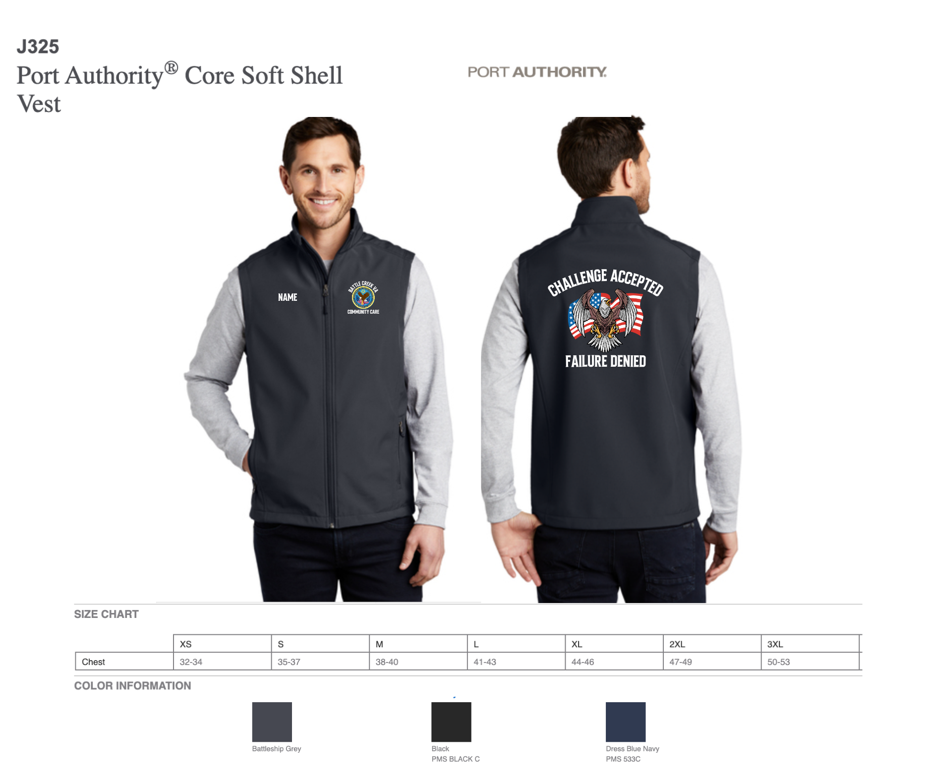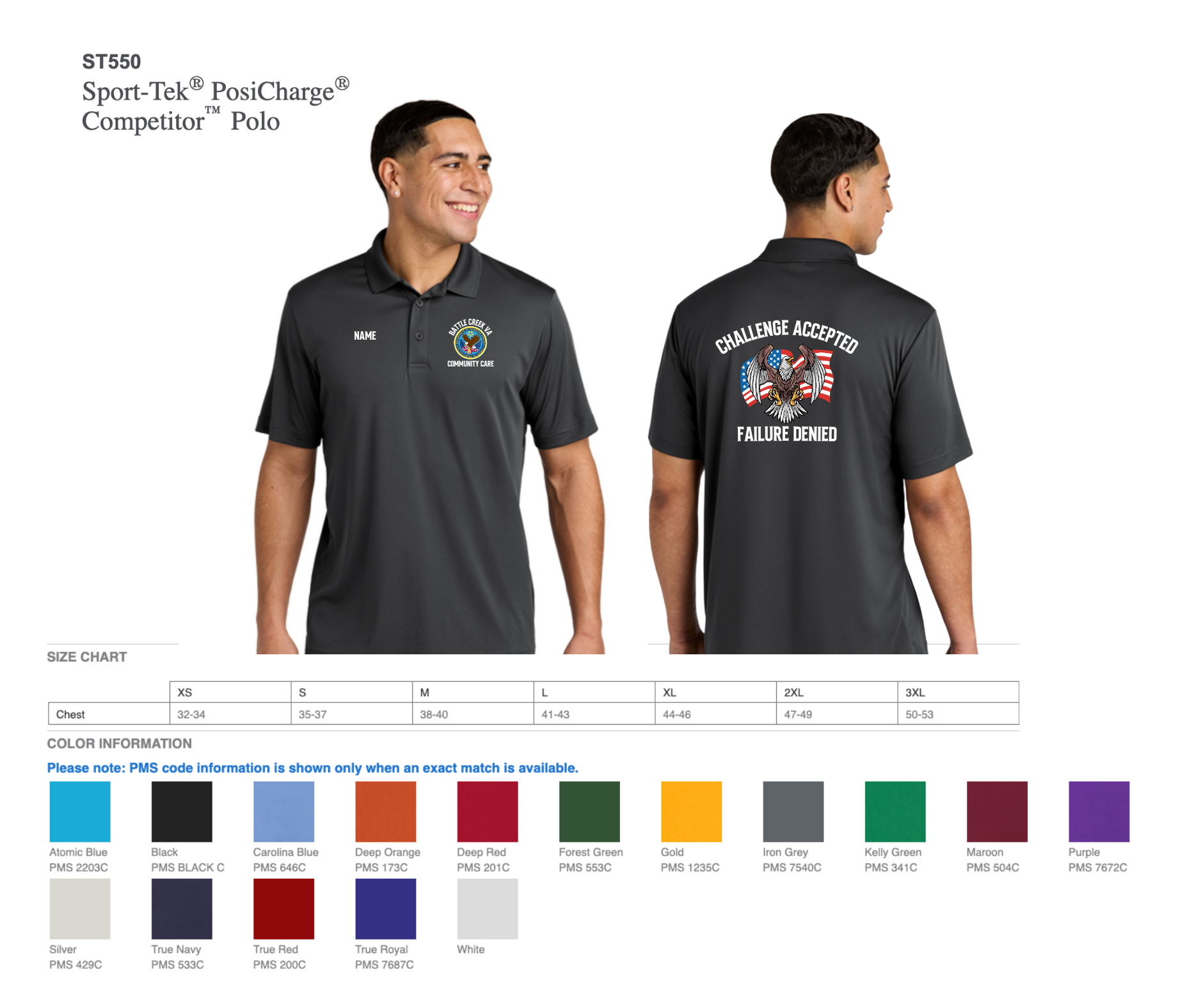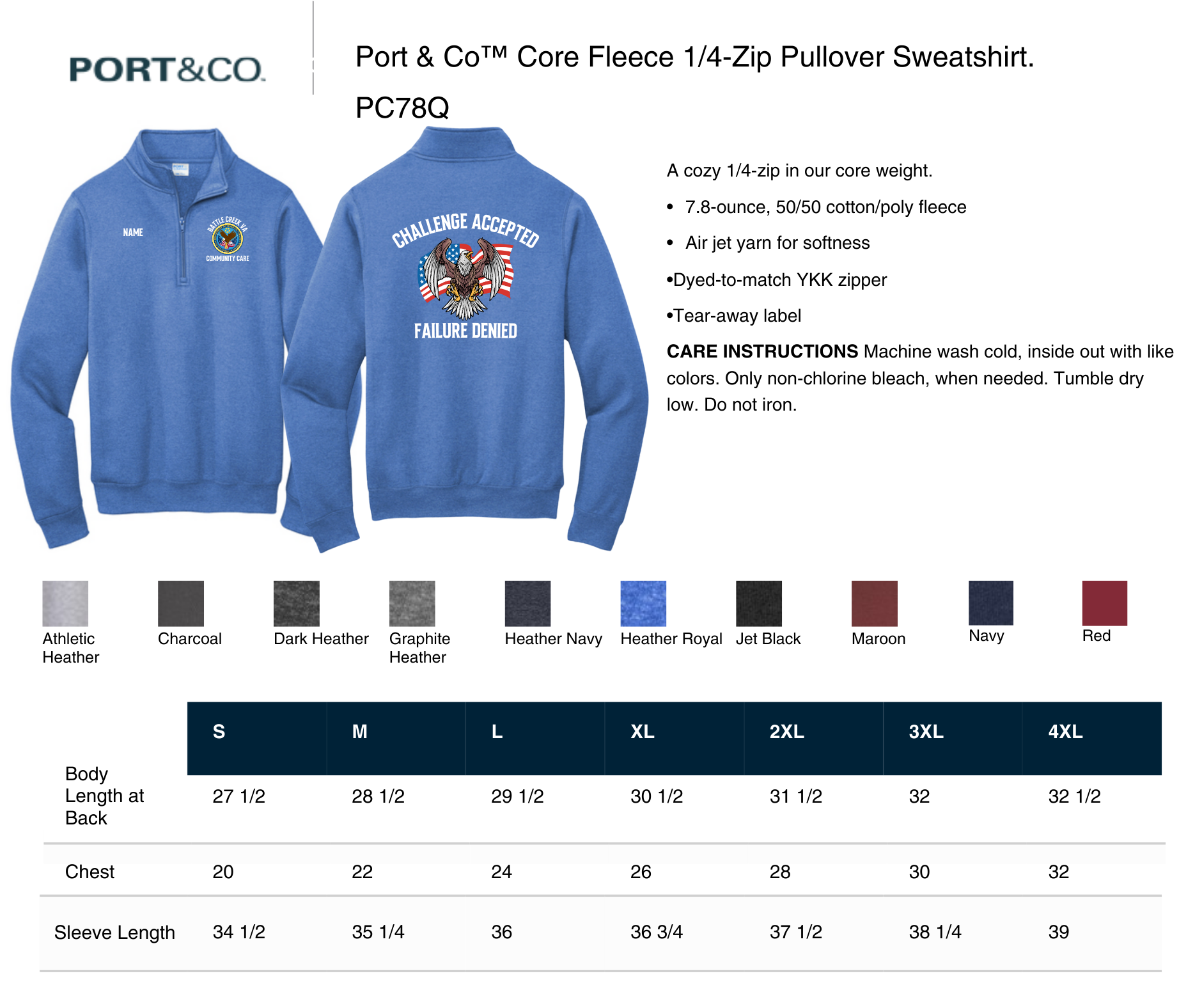 sizing specs and color options in pictures
