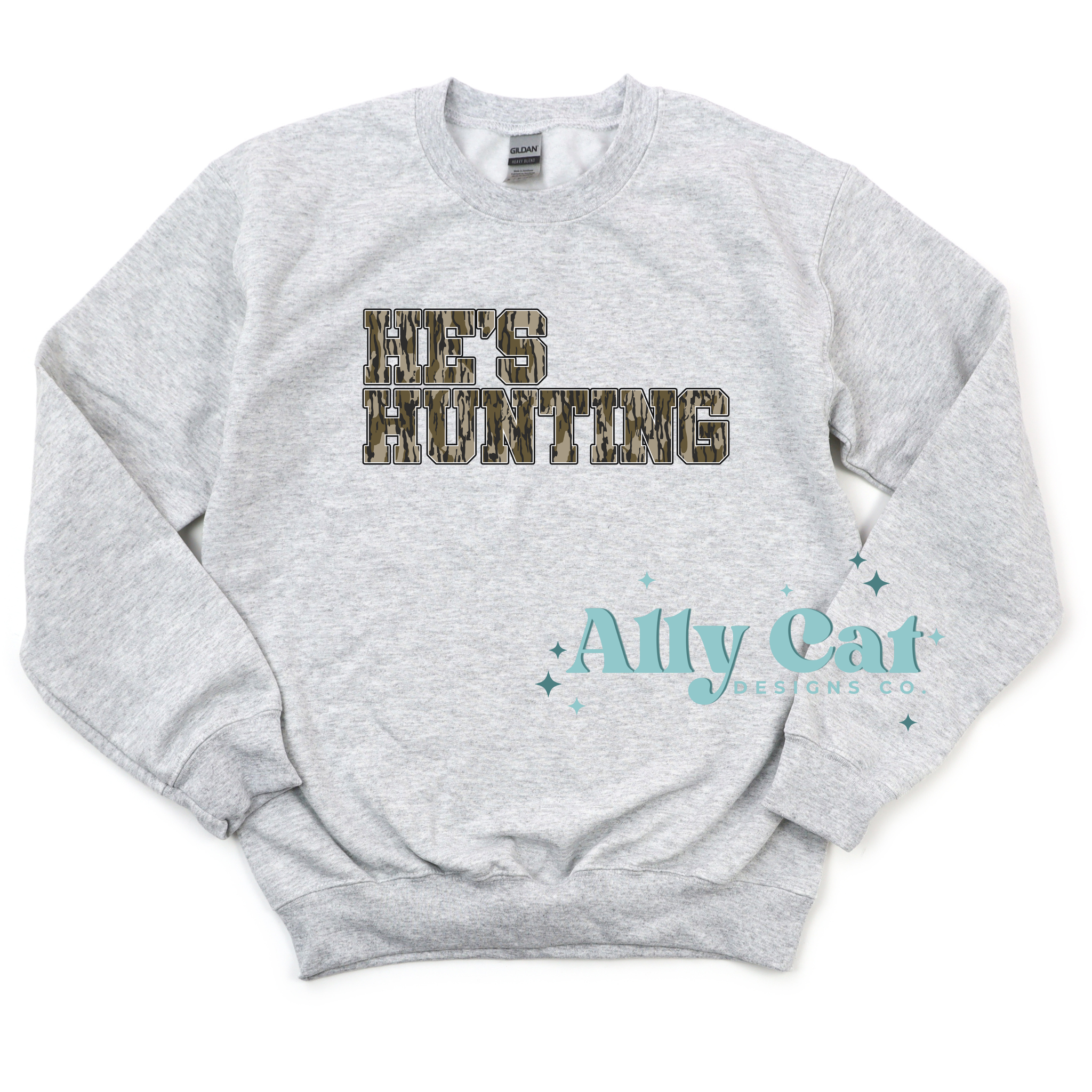 He's Hunting Camo Print Crewneck