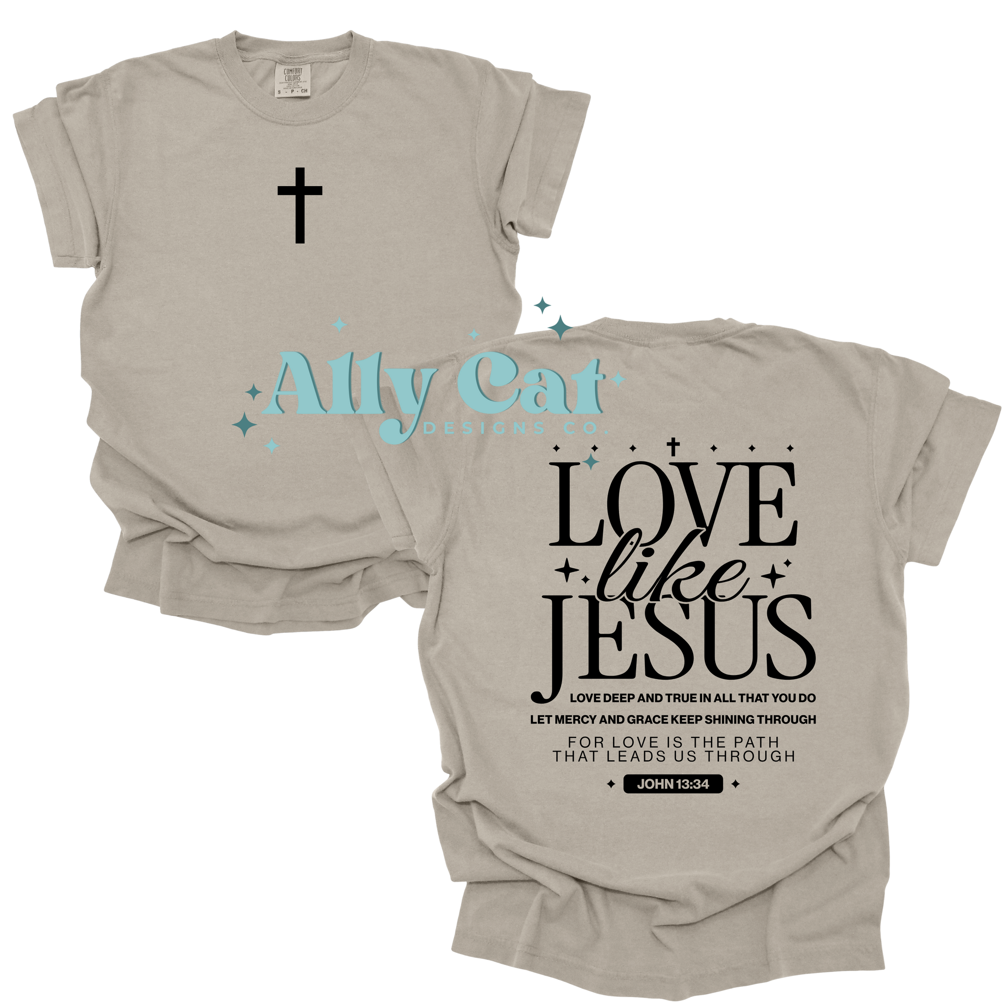 • Load image into Gallery viewer, love like jesus scripture cross tee
