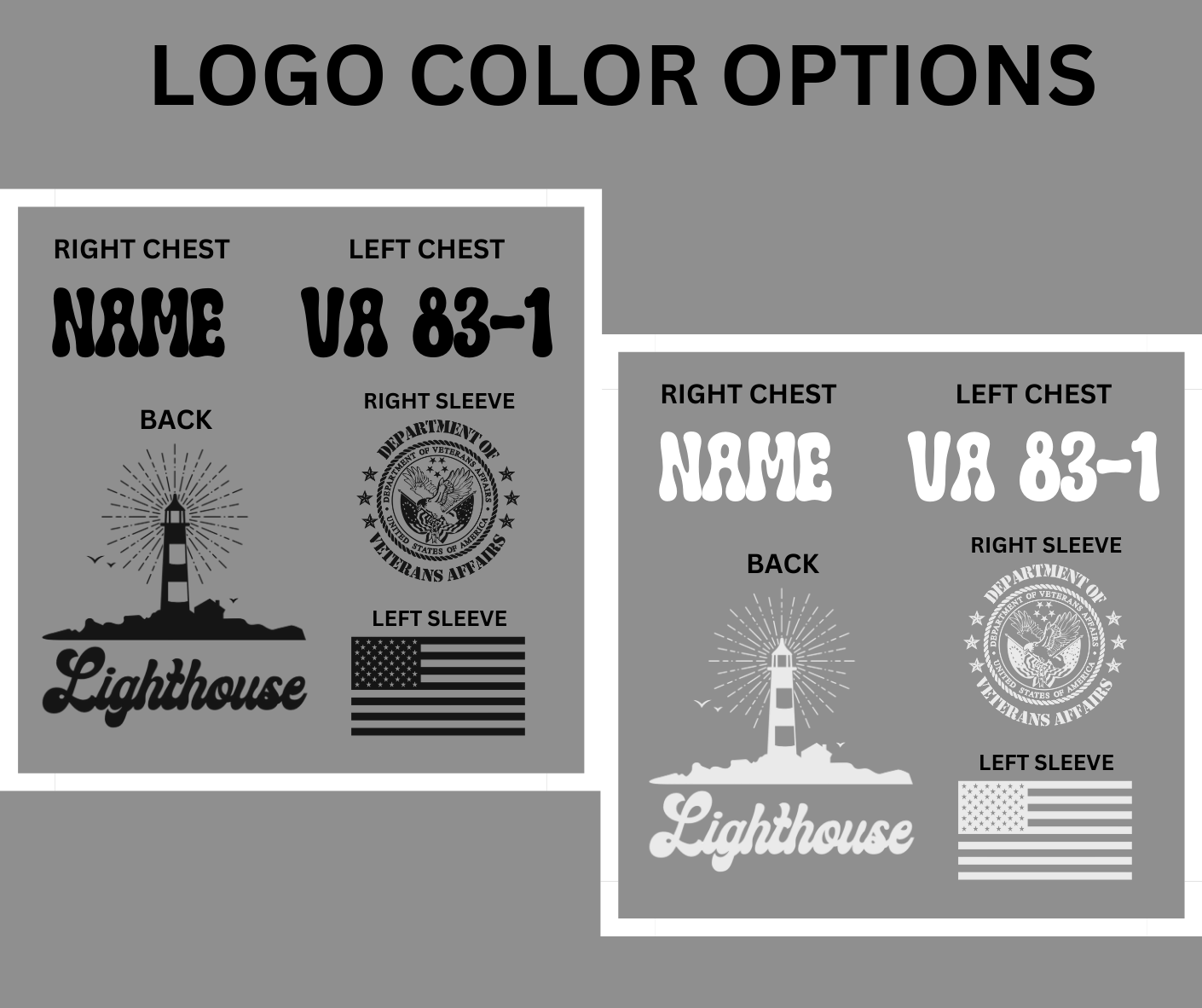 There are 2 Logo color options. Please specify which color you would like on each color.